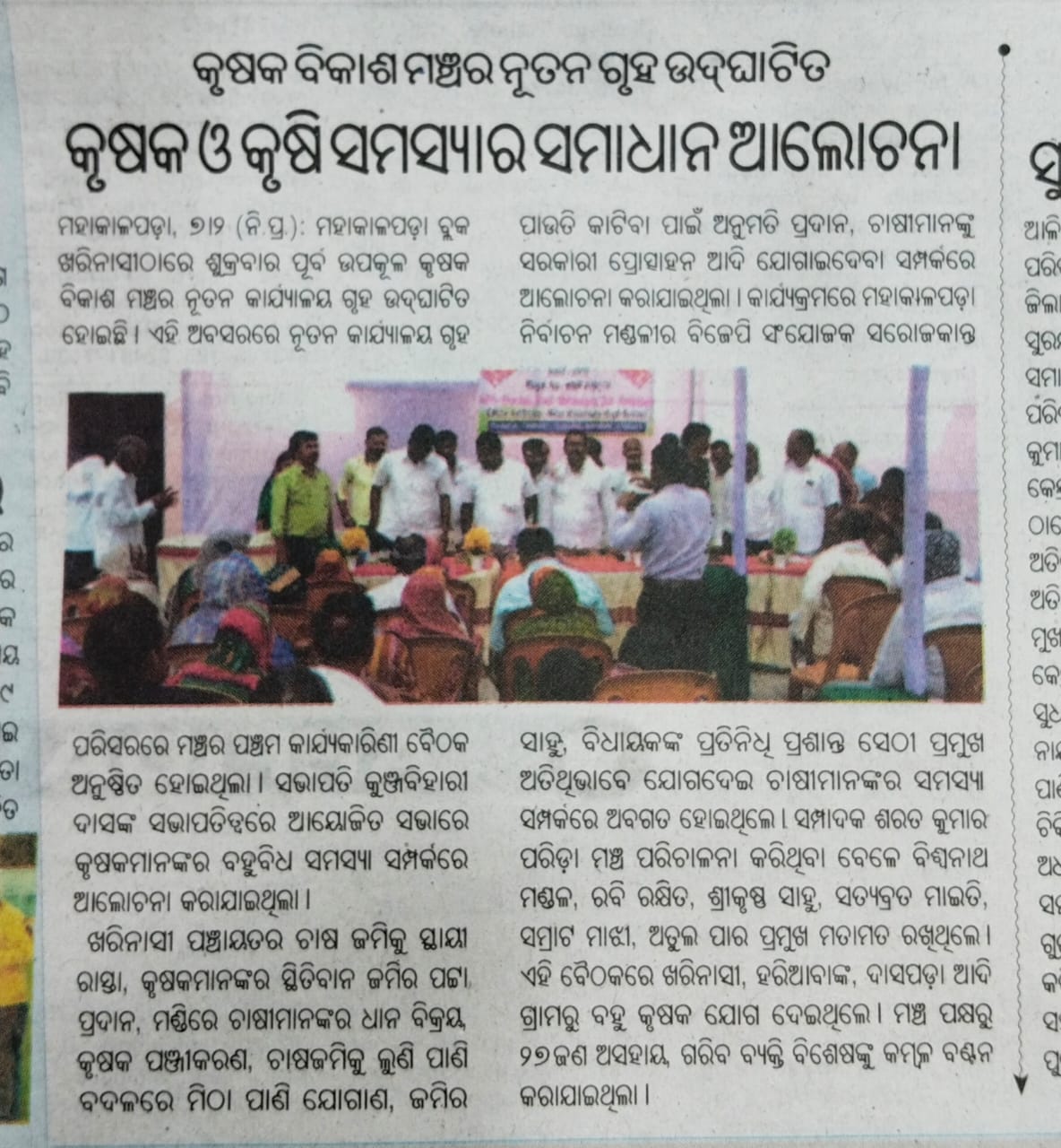 Purba Upkul Krushak Bikash Manch, Near High School, Kharinasi, Kendrapara, Odisha 754224